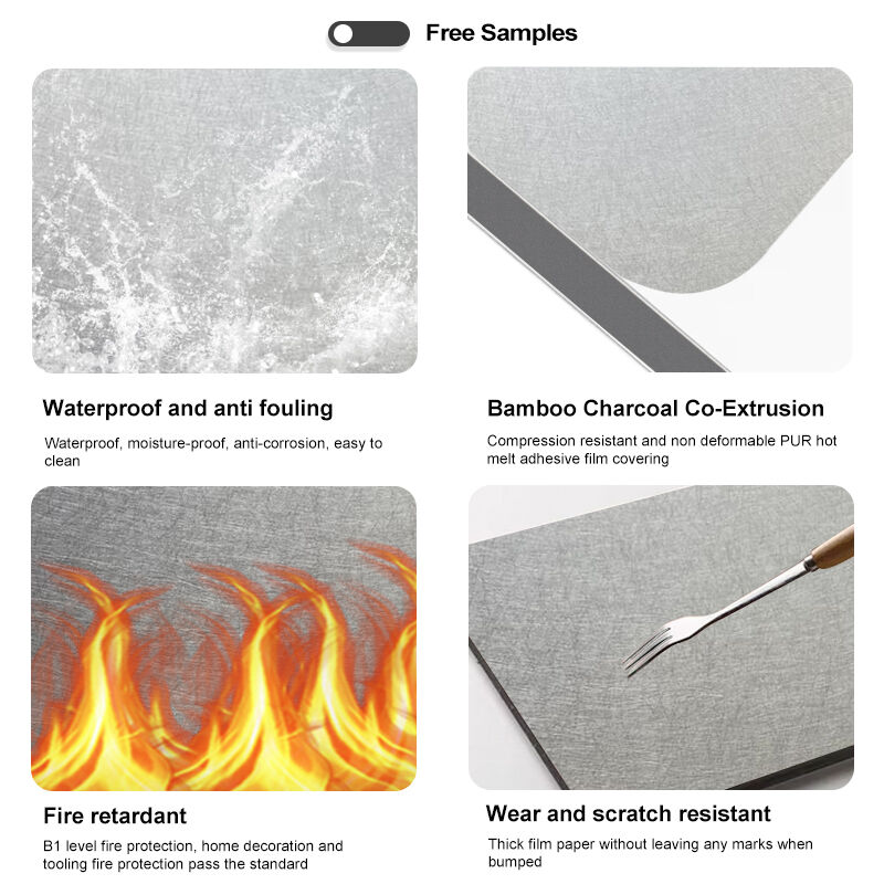 Waterproof metal bamboo charcoal fiberboard can be customized for interior decoration, combining personalization and practicality. Immerse yourself in the beauty of the combination of metal and eco-friendly bamboo charcoal fiber, providing modern elegance and water resistance to interior spaces, adding a touch of sophistication to the space. The seamless blend of simulated metal and bamboo charcoal fibers creates a mesmerizing visual effect that enhances the beauty of interior decoration. Bamboo charcoal fiberboard is designed for practicality, waterproof and moisture-proof. They are effectively waterproof, ensuring longevity and preventing moisture-related problems, making them ideal for bathrooms, kitchens and other wet areas. The fiberboard is made of high-quality PVC simulated metal and environmentally friendly bamboo charcoal fiber, which is durable and sustainable. The combination of these materials ensures reliable and long-lasting interior solutions.