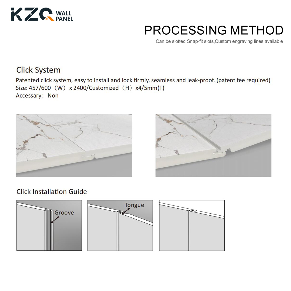 SPC Duvar Paneli, farklı kurulum ihtiyaçları için uygun hale getiren 4 mm ve 5 mm kalınlığında mevcuttur.SPC duvar paneli fayansının tıklama taş tasarımı duvara DIY kurulum için uygundur, ve aynı zamanda zemin olarak da kullanılabilir.